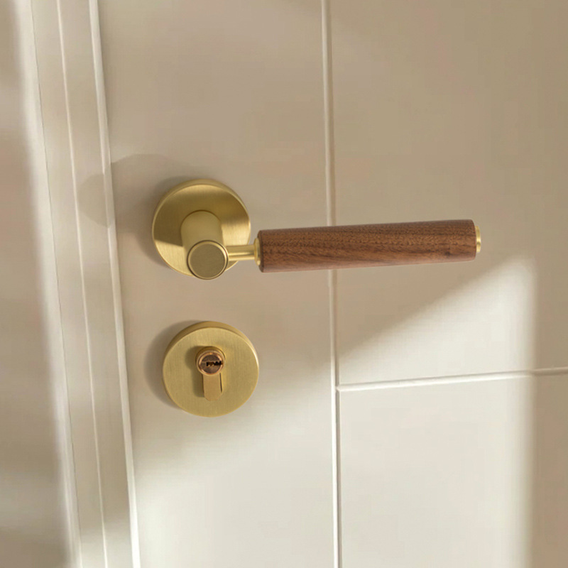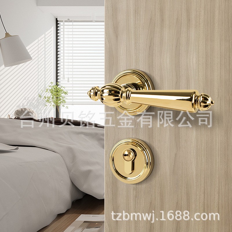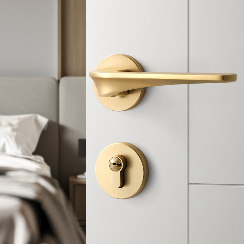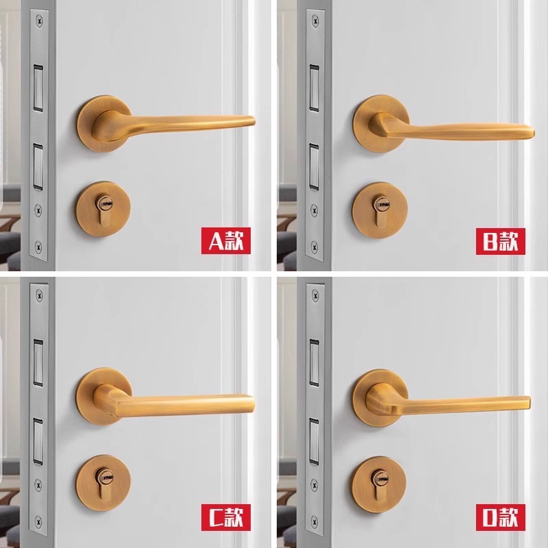 Kunci pegangan pisah emas, kunci tekanan pintu kamar tidur, kunci pintu kayu sederhana