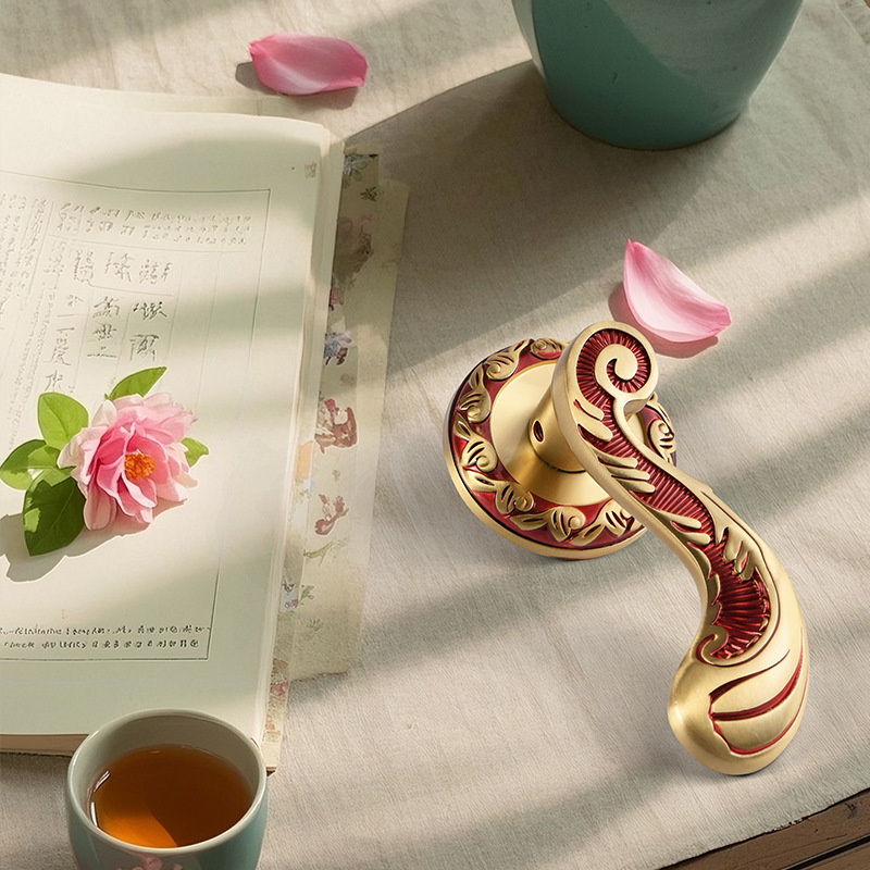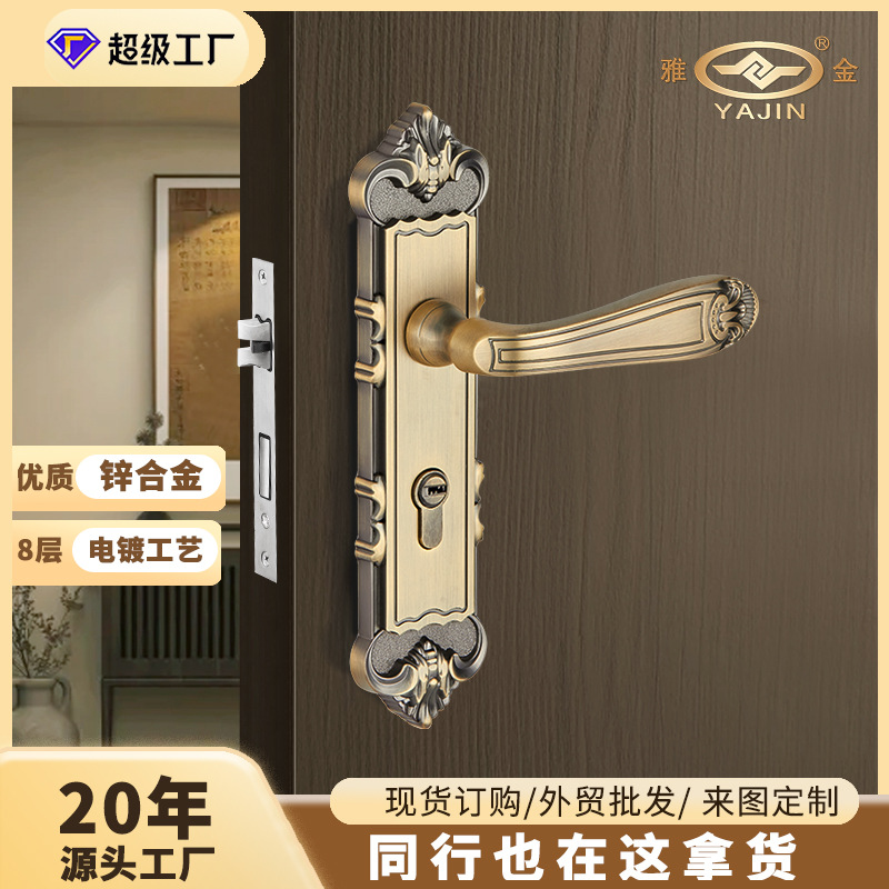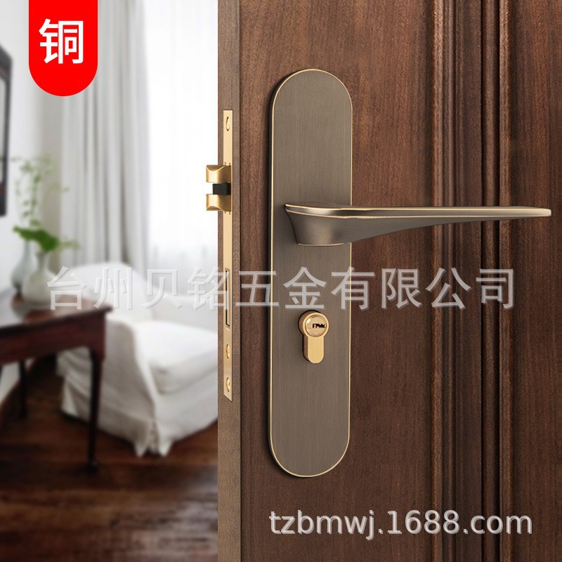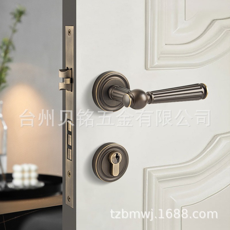 Pabrik Langsung Baru Gaya Tiongkok Gaya Perancis Perunggu Kunci Pintu Interior Kamar Mandi Pintu Kamar Tidur Pegangan Pintu Pintu Diam Magnetik