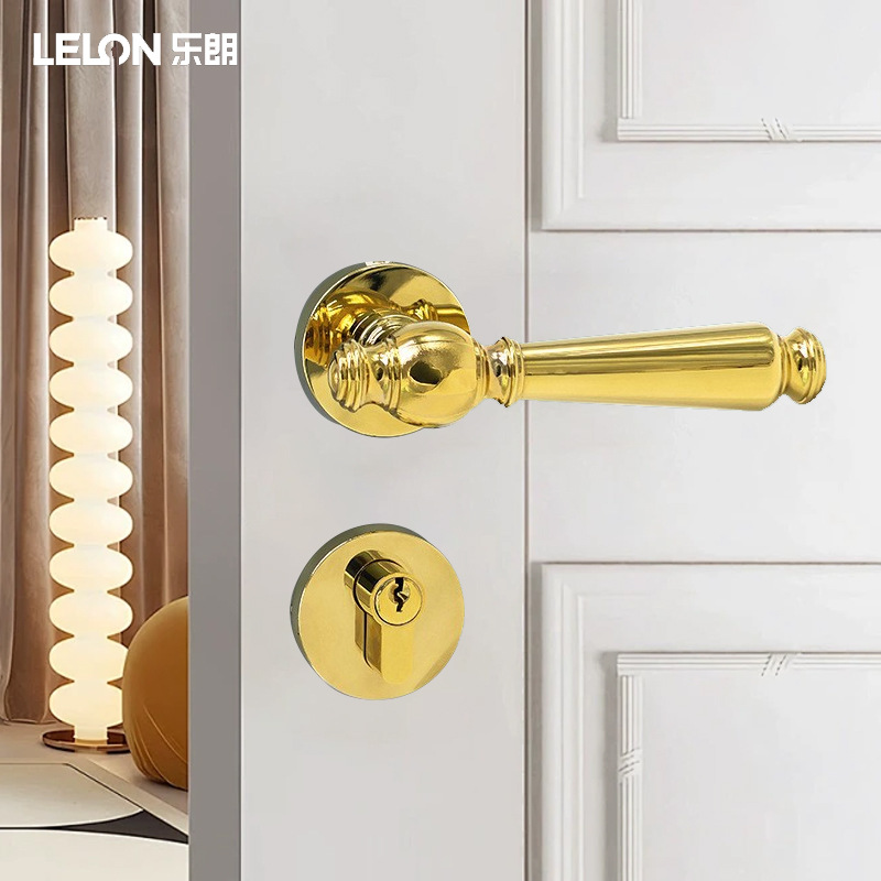 Kunci pintu terpisah magnetis, lampu kamar tidur mewah PVD Prancis ruang Emas krim pintu kayu pegangan pintu angin