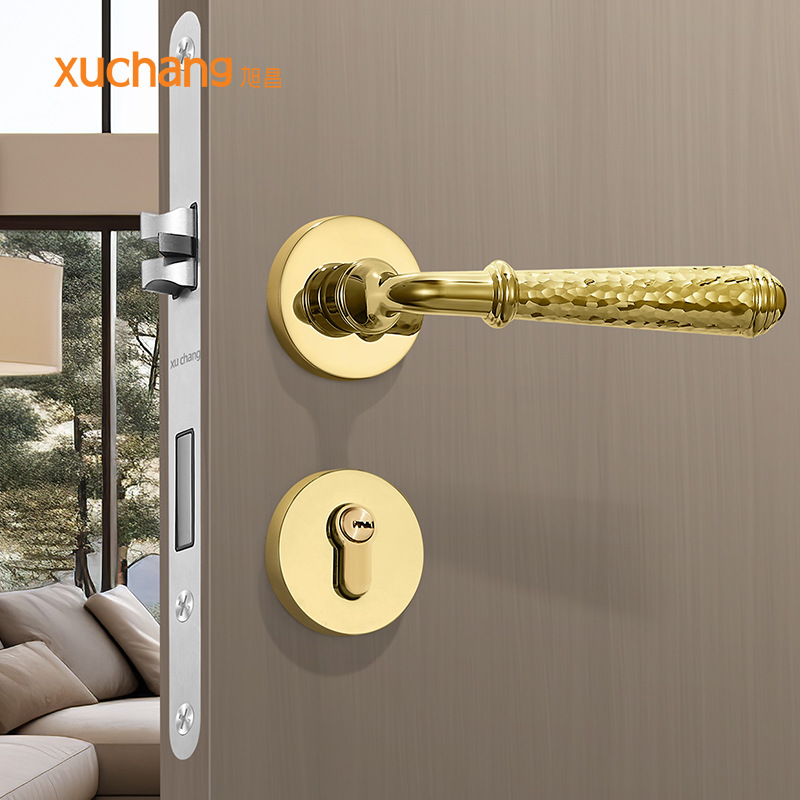 Kunci pintu dalam ruangan kamar tidur kunci pintu ruang magnetik senyap gagang pintu kunci terpisah perunggu kuning kunci pintu kayu lemari rumah tangga