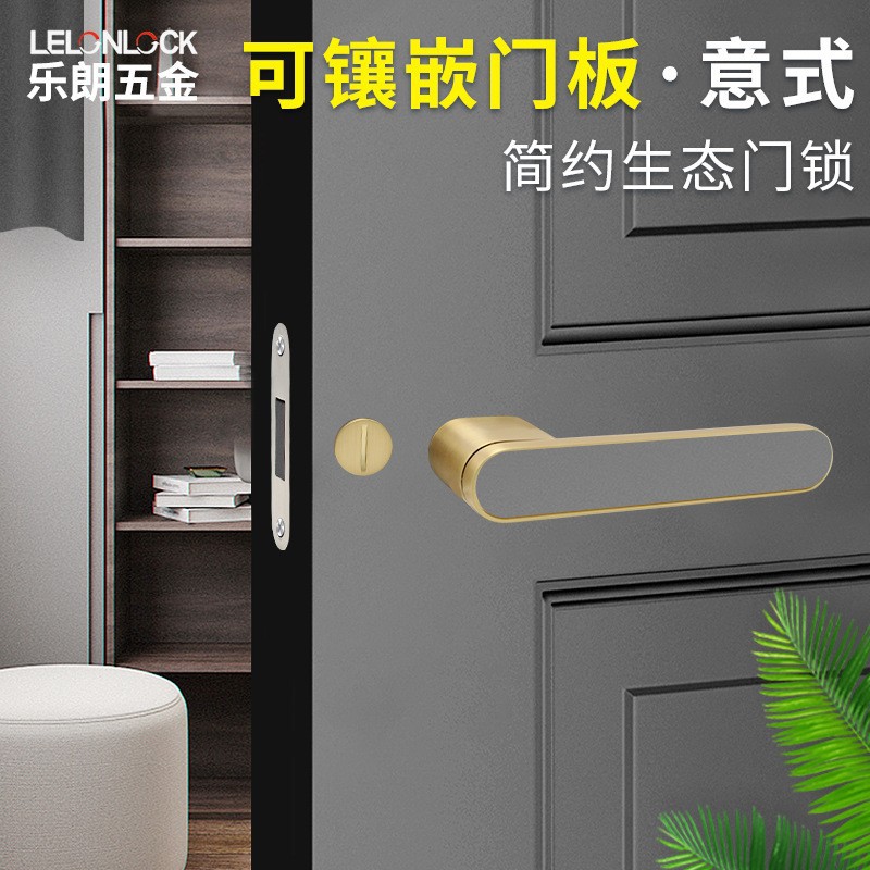 Kunci pintu minimalis Italia, kunci pintu kamar tidur ekologis dalam ruangan bertatahkan panel lampu mewah senyap kunci pintu magnetik