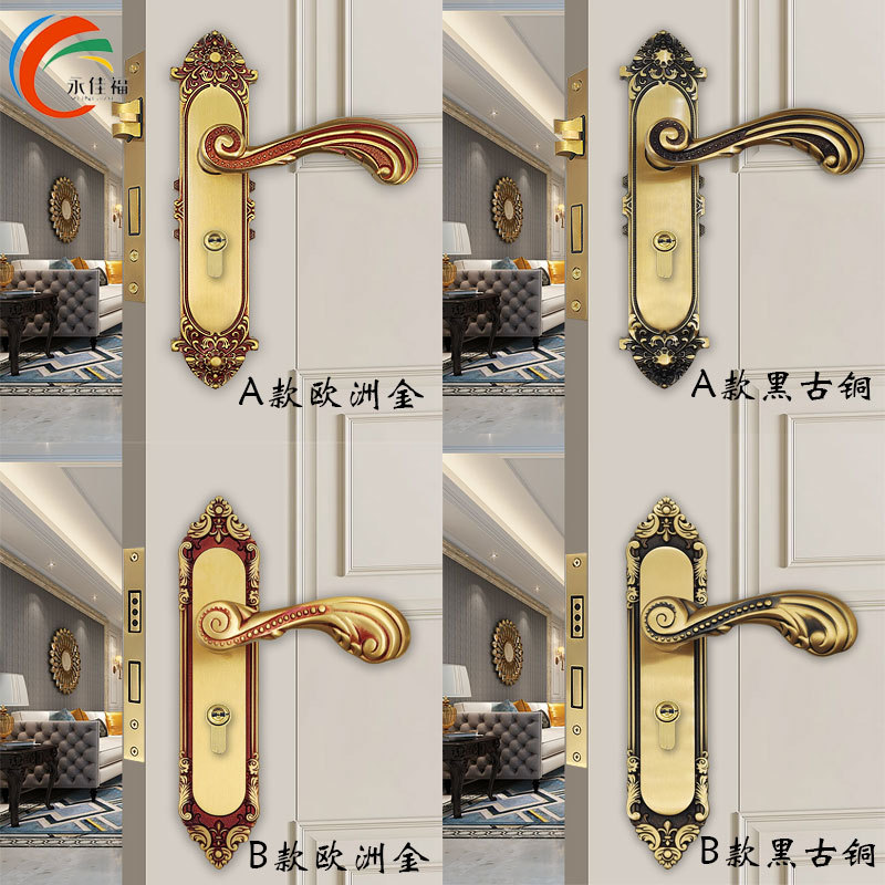 Yongjiafu Gaya Eropa Kunci Pintu Tembaga Penuh Diam Magnetik Isap Kamar Kamar Tidur Kunci Pintu Kayu Solid Villa Kunci Tembaga Murni Emas Set