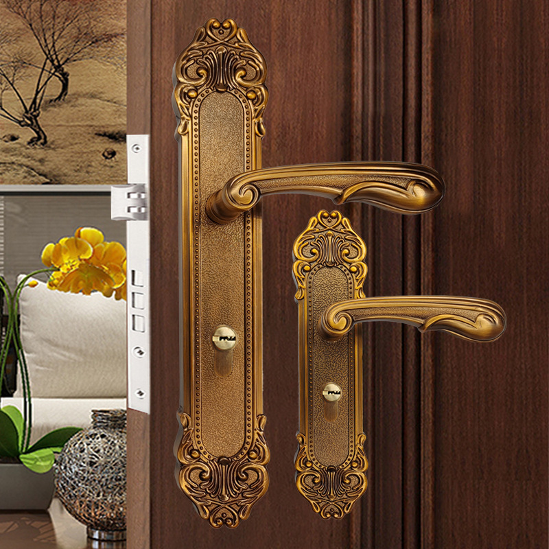 Kunci pintu kamar tidur logam campuran zinc emas, lampu retro perancis, gagang pintu kamar mewah, kunci pegangan bisu penyedot magnet