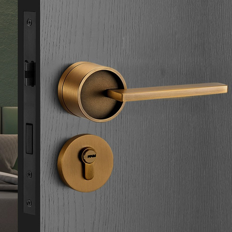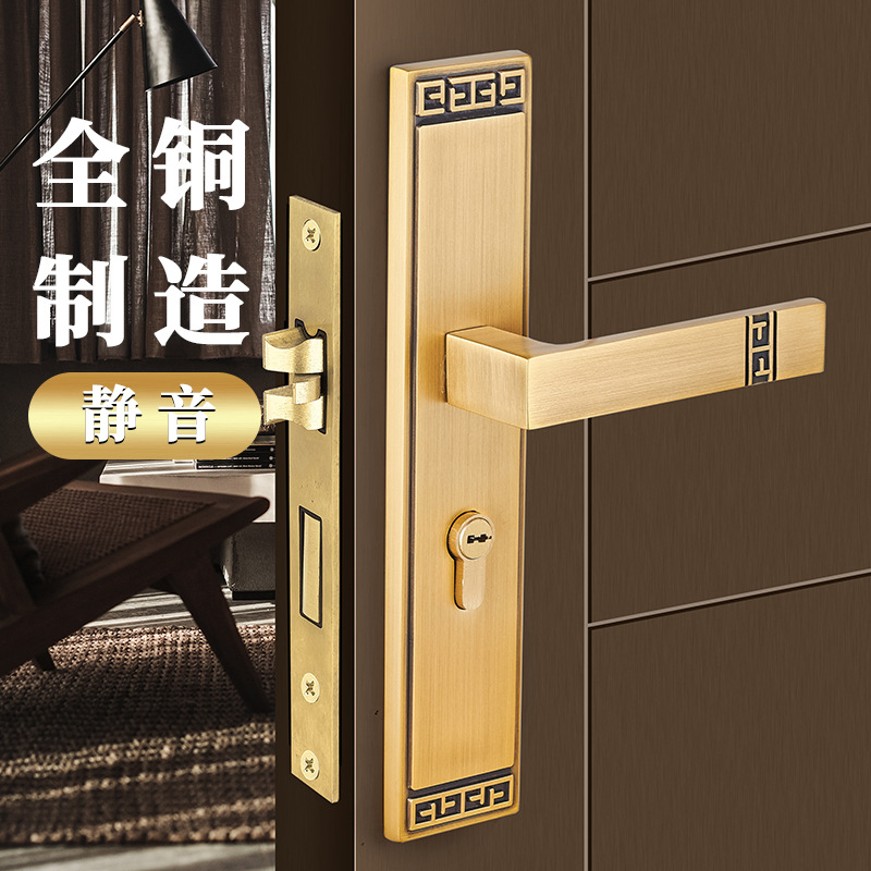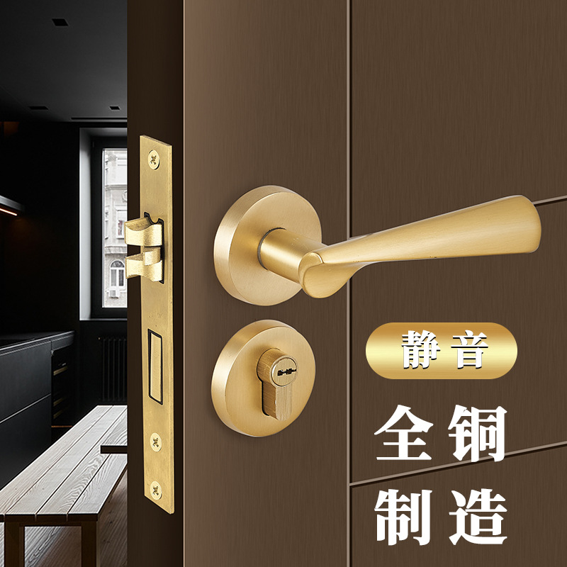 Kunci pintu magnetik kuningan Cina, kunci pintu rumah tangga kayu solid bisu ruang tembaga kamar mandi presisi cor kunci kuningan