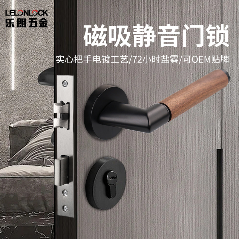 Kunci pintu dalam ruangan, kunci pintu kayu rumah tangga, hisap magnetik sunyi, kunci pintu kamar tidur, kunci pintu modern Nordik