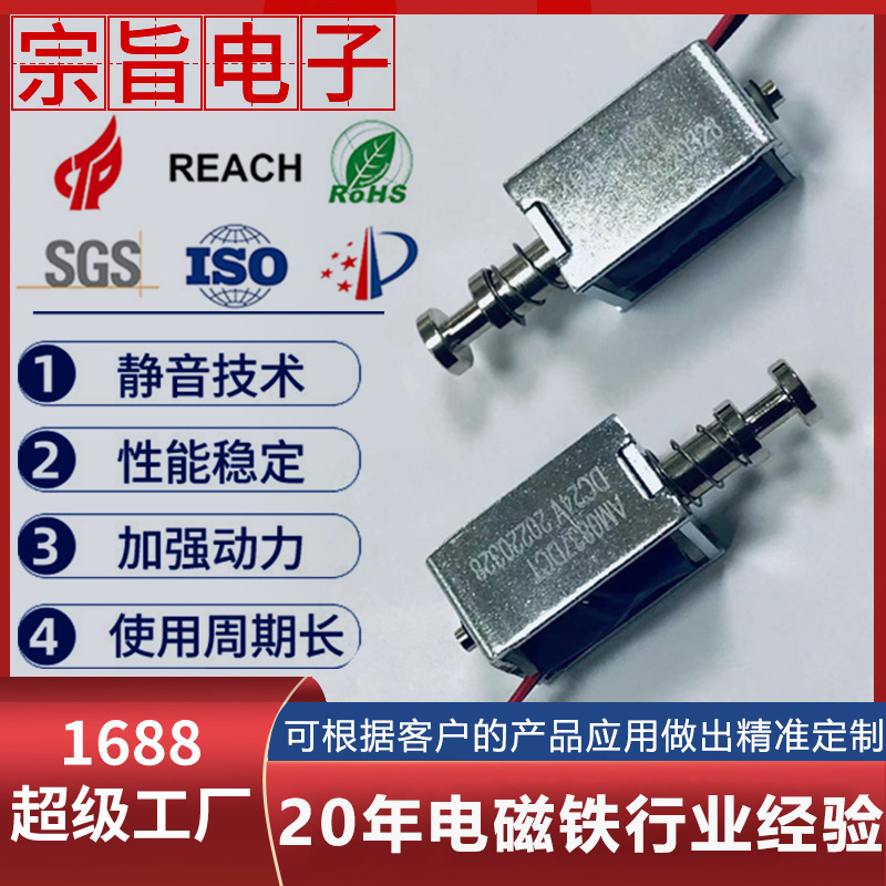Mikro-Elektromagnet Bingkai DC Tipe Dorong Tarik Loker 24V Cerdas Kunci Arus Terbalik Kumparan Magnet Kuat Tahan Suhu Tinggi