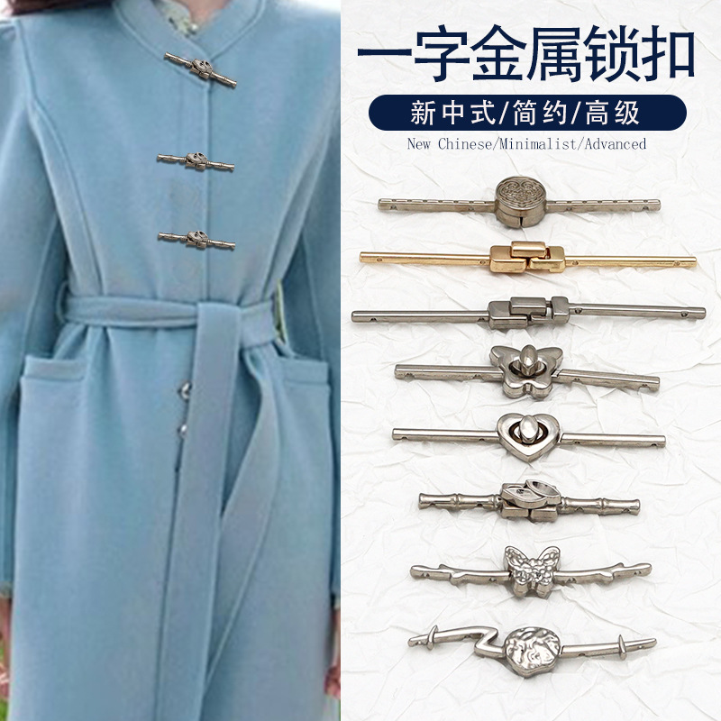 Kancing Kancing Kancing Pelat Satu Huruf Logam Berkualitas Tinggi Cheongsam Gaya Tiongkok Gesper Pengisap Magnetik Berputar Kancing Kancing Mantel Kupu-kupu