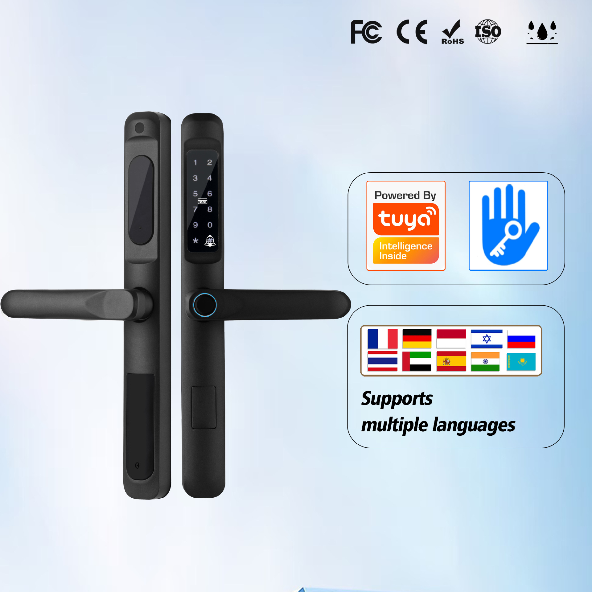 Kunci pintu pintar sidik jari aluminium, gembok pintu cerdas tahan air, WIFI, halaman luar ruangan, pintu kaca geser, membuka kunci jarak jauh