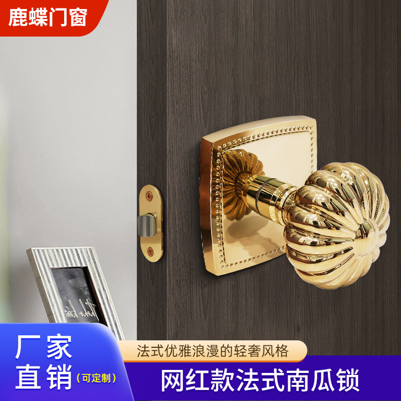Pintu retro Perancis ringan mewah kunci labu paduan seng emas Aksesori kunci pintu mekanis kunci magnetik penjualan langsung pabrik Foshan