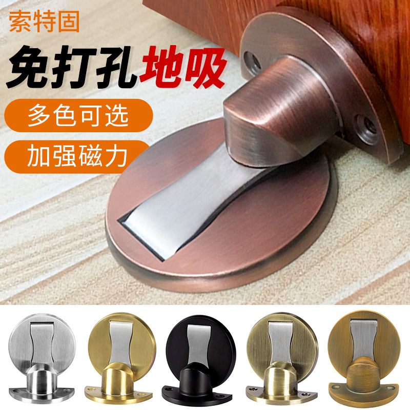 Baja tahan karat tidak terlihat lantai hisap bebas pukulan dengan karet paduan seng magnetik gesper sentuh anti-tabrakan pintu berhenti sentuh magnetis kuat penahan pintu