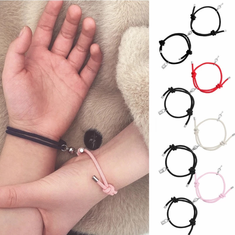 2023 paduan kunci kunci gelang magnet hisap pasangan token pria dan wanita gelang tenun perhiasan grosir