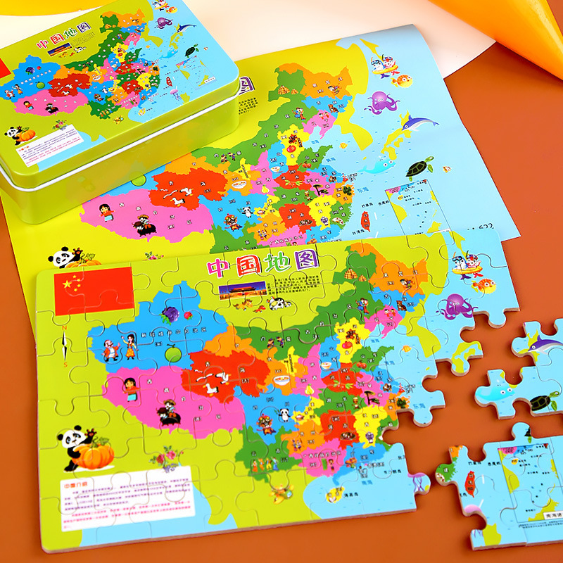 Kotak besi kayu dunia magnetis teka-teki peta Tiongkok menebal teka-teki anak-anak pendidikan dini puzzle magnetik tiga dimensi