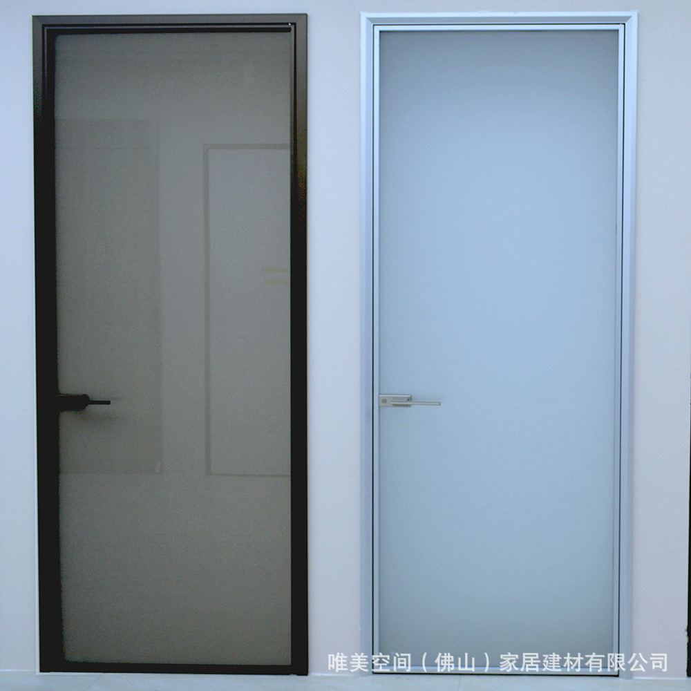 Pintu kaca minyak putih, abu-abu minyak pasir tempered glass cahaya mewah sangat sempit bingkai aluminium Aloi pintu kamar mandi kunci magnetik