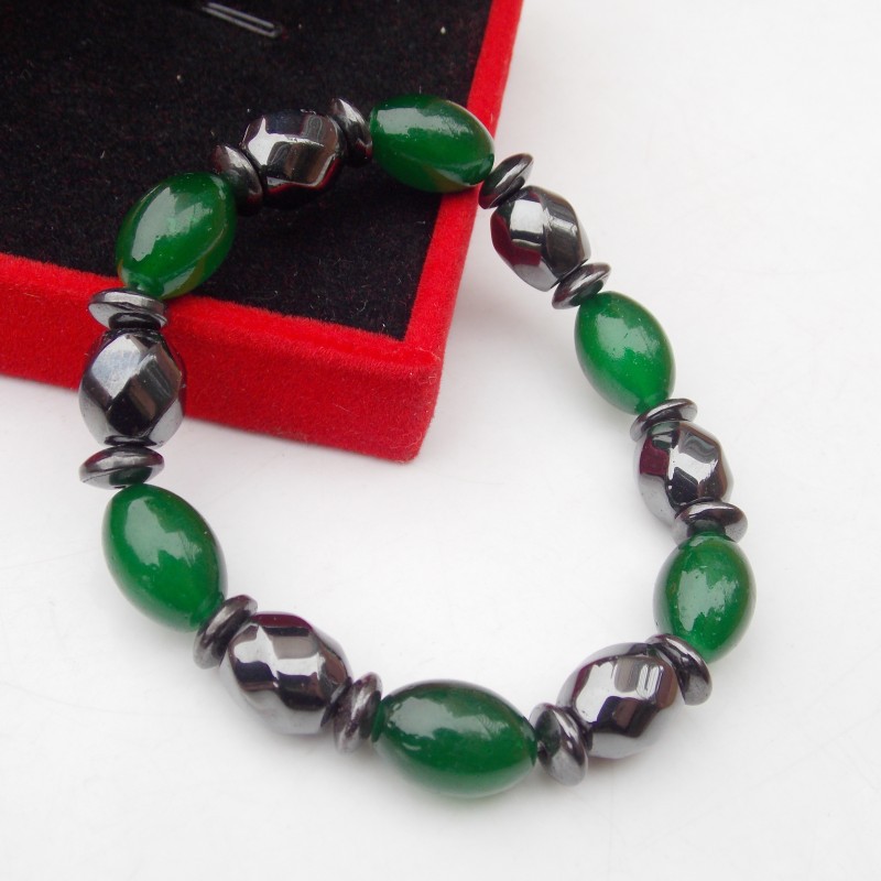 Gelang jalan batu akik hijau batu empedu hitam magnetik gelang Tautan manik-manik potongan permukaan magnet lingkaran tunggal gelang manik-manik elastis Magnet hitam