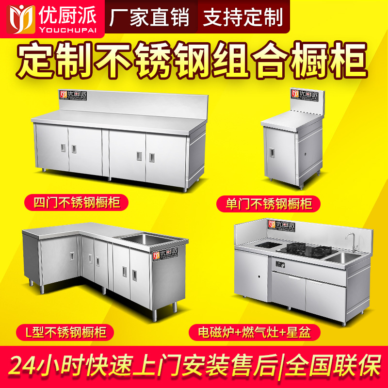 Lemari baja tahan karat dapur bagus Pie tangki air 304 Integral satu cetakan meja lemari dapur kabinet dapur