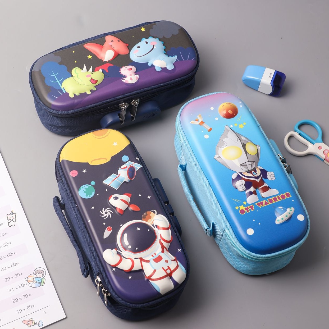 Kotak pensil EVA3D kunci kata sandi tiga dimensi, kotak pensil kapasitas besar kartun, tempat alat tulis, kotak pensil siswa sekolah dasar
