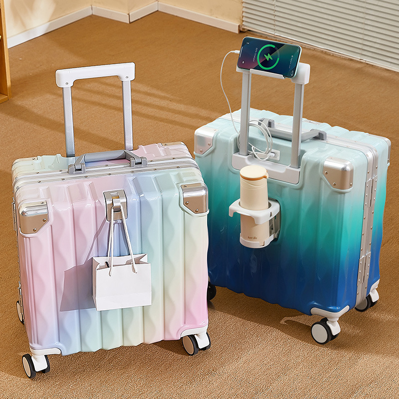 Kotak Tarik Bagasi Terbuka Samping Model Baru 20 Inci Boarding Box Perjalanan Roda Universal Diam Kotak Kode Pria Wanita