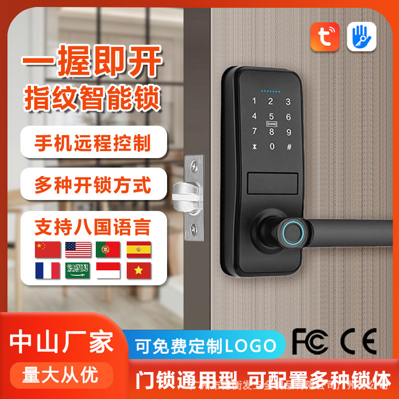 Kunci pintu pintar Tuya dengan pengenalan wajah otomatis penuh, sidik jari, dan interkom video untuk penggunaan rumah, model perdagangan luar negeri, anti maling.