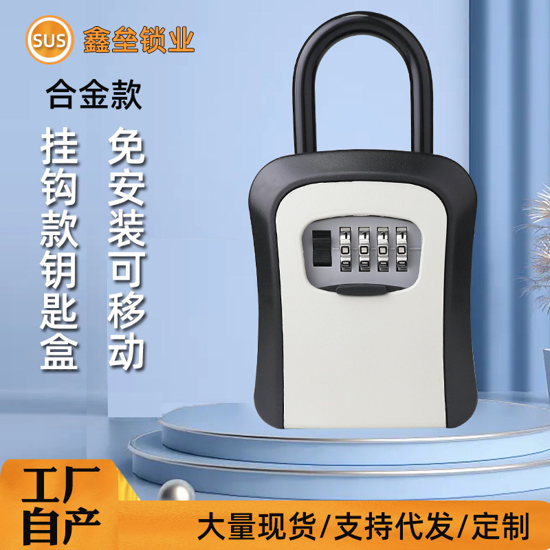 Kotak Kunci Tanpa Pemasangan Kotak Kata Sandi Logam Lintas Batas Empat Orang Dengan Kait Kunci Dekorasi Gantung