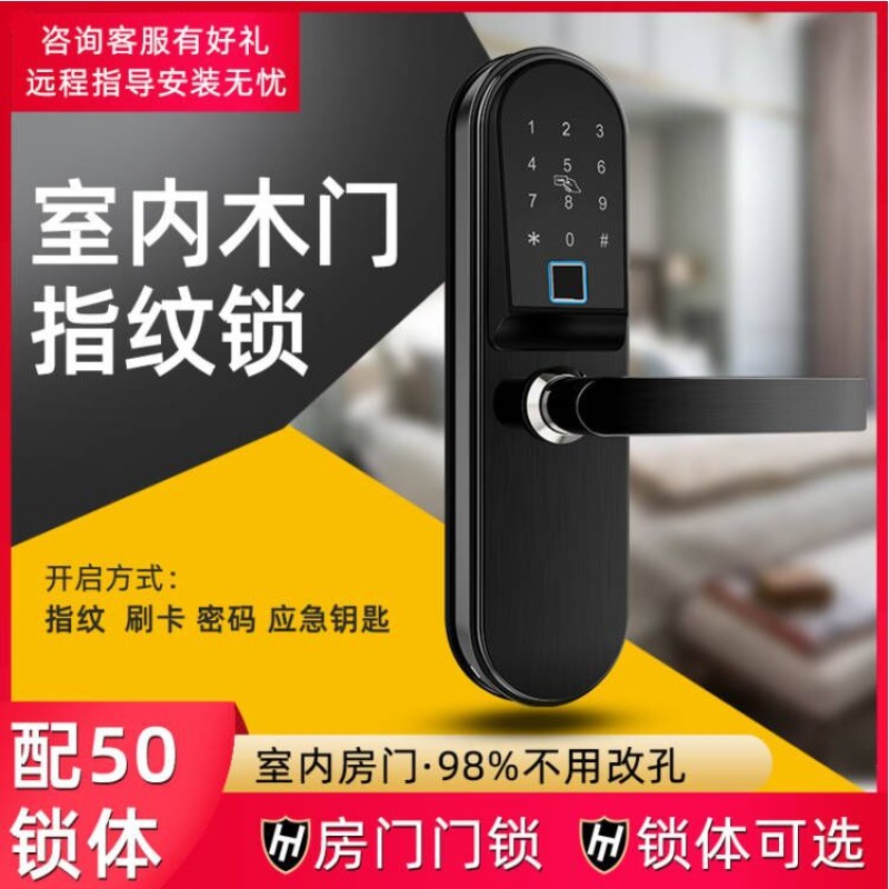Blue Shield kunci pintu pintar, gembok pintu dalam ruangan kamar tidur kayu polos sederhana sidik jari, tidak bersuara, kunci pintu rumah tangga