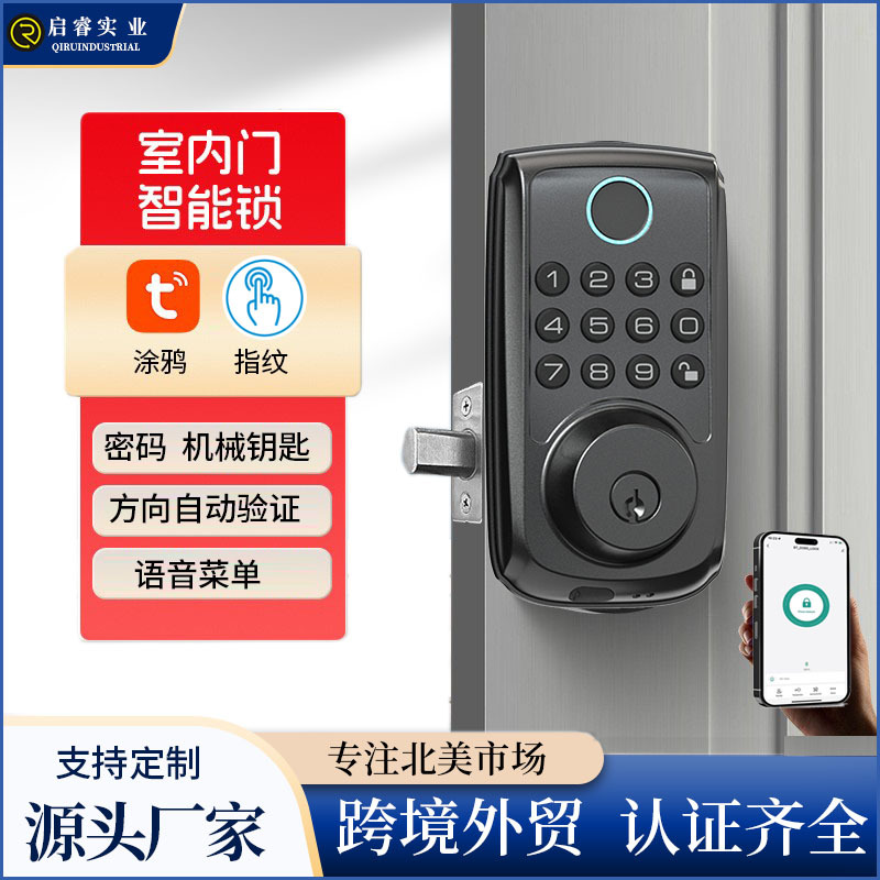 Kunci sidik jari pintu kayu dalam ruangan stainless steel baru lintas batas