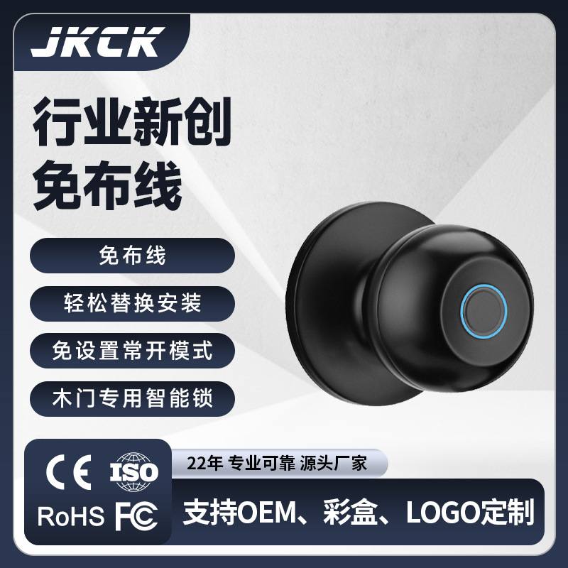 Rumah Tangga Pintu Interior Kunci Fingerprint Kunci Pintu Kamar Tidur Kunci Elektronik Pintu Kayu Bentuk Bola Tanpa Lubang Kunci Sandi Kantor Pabrik