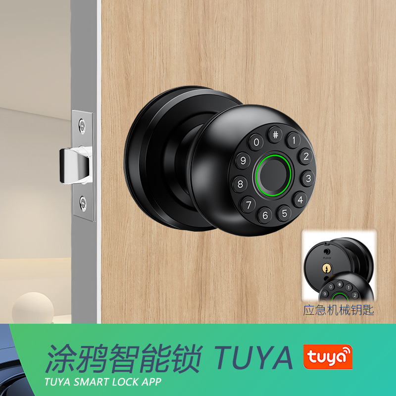Kunci pintu kayu bulat untuk ruangan dalam, kunci sidik jari, kunci pintar kantor, kunci elektronik dengan kata sandi, kunci pintu rumah pintar