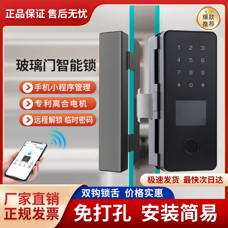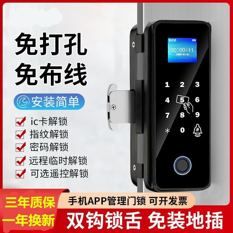 Kunci sidik jari pintu kaca kunci kata sandi tanpa lubang pintu tunggal dan ganda kantor tanpa bingkai kunci pintar elektronik tanpa bingkai