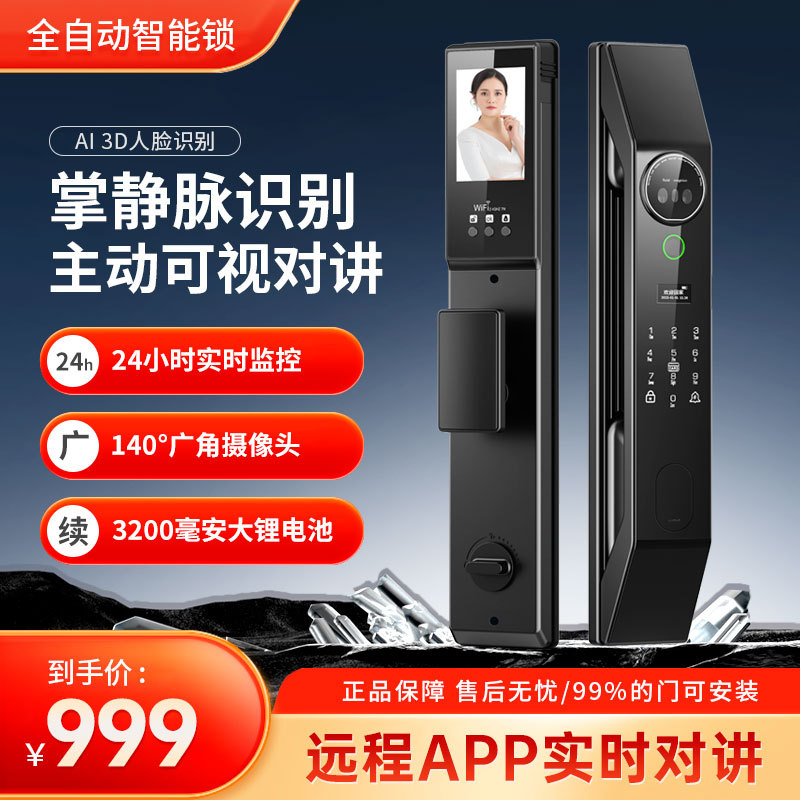 Cross-Border Hot Sale Pengenalan Wajah APP3D Kunci Pintar Kunci Ukiran Teknologi Kunci Sidik Jari Kunci Ganda Layar Ganda Kunci Sandi