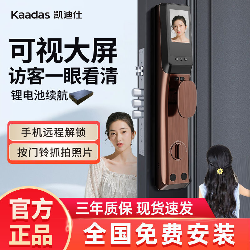 Kunci sidik jari pengenalan wajah Kang Rin Kunci pintu cerdas baik visual mata kucing otomatis elektronik rumah anti-pencurian kunci kata sandi