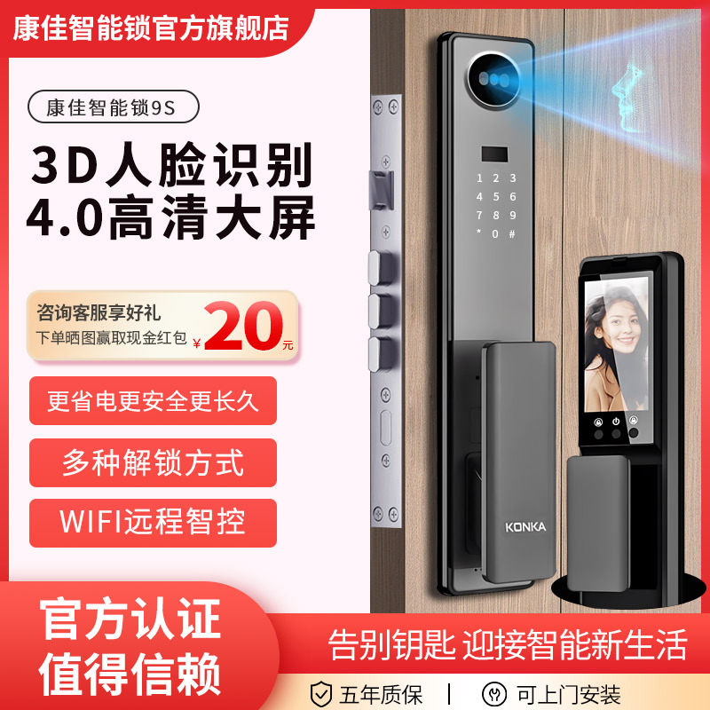 Konka 3D Pengenal Wajah Kunci Cerdas Mata Kucing Terlihat 9S Otomatis Elektronik Rumah Anti Maling Sidik Jari Kunci Kode 4S