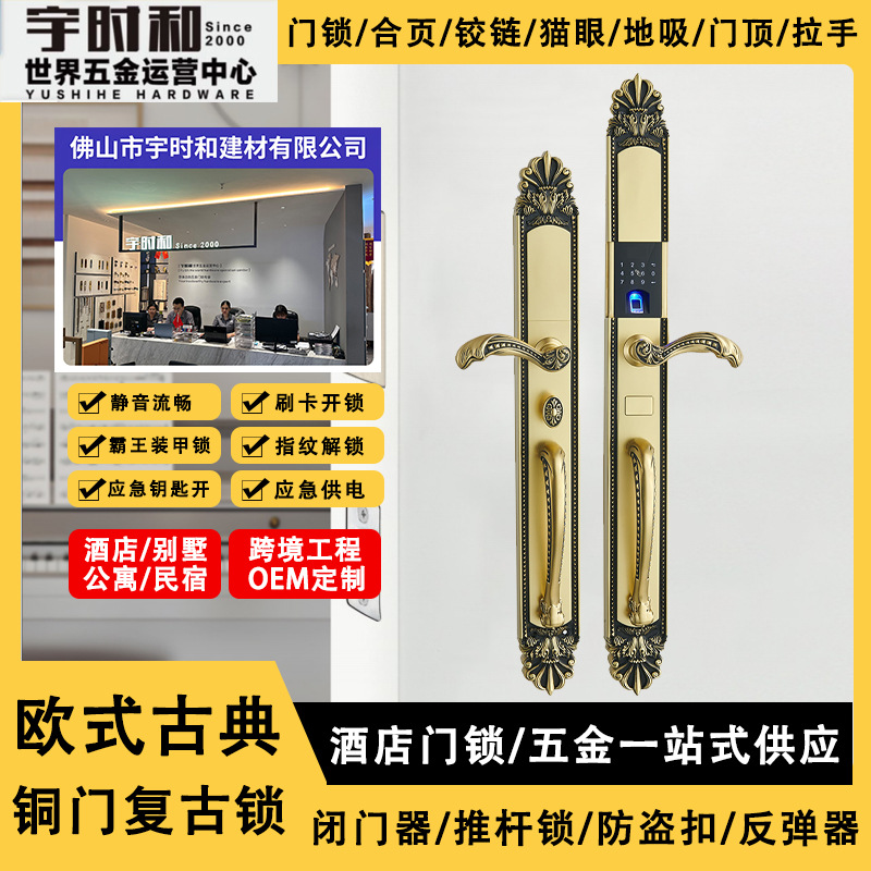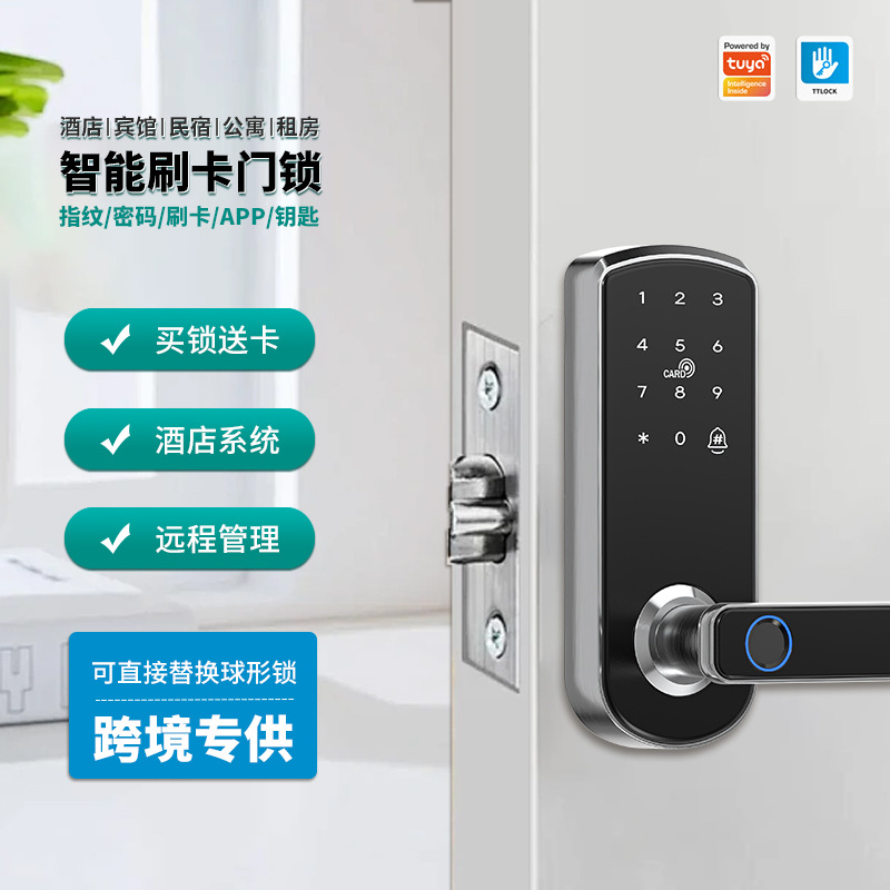 Kunci pintar otomatis penuh untuk perdagangan luar negeri lintas batas, kunci sidik jari, kunci kartu gesek elektronik, kunci sandi, kunci pintu kayu dalam ruangan Amerika Utara