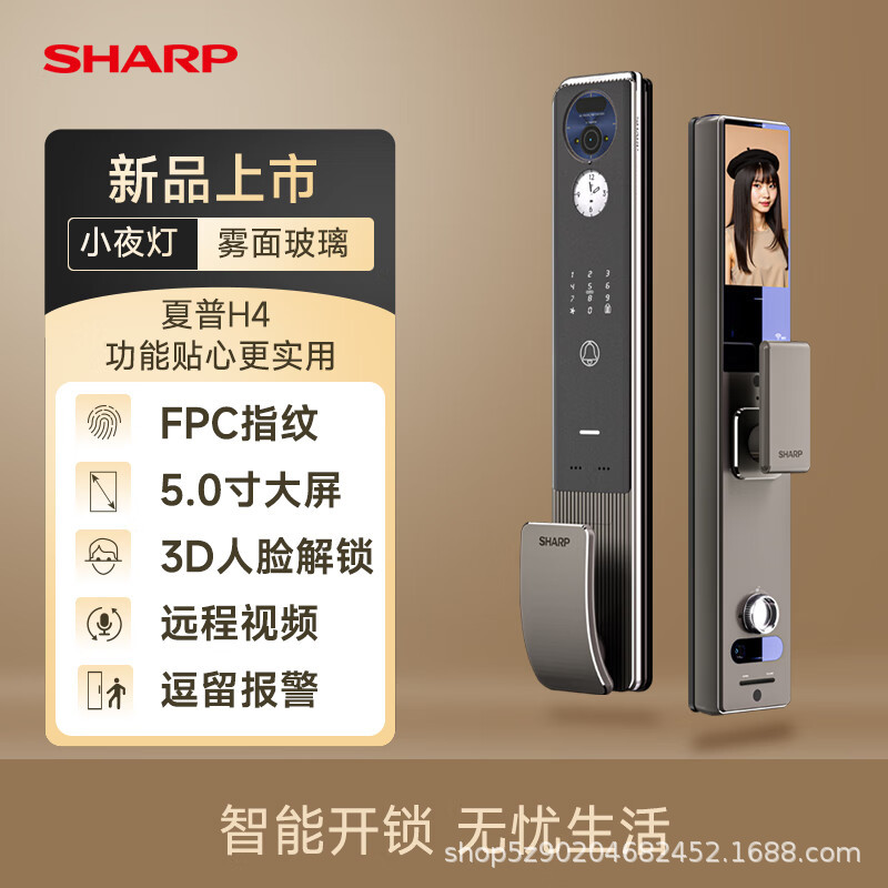 SHARP SHARP H4 Kunci Kata Sandi Sidik Jari Kunci Cerdas AI Cat Eye Layar Besar Wajah Manusia Pena Telapak Jari Telapak Tunya Bahasa Rusia