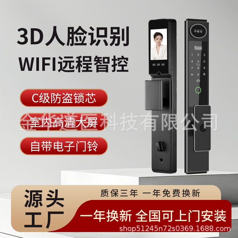 Kunci Pintu Cerdas Otomatis Monitor Kunci Jari Berkarakter 3D Pengenalan Wajah Kunci Cerdas Kunci Kata Sandi Kunci Elektronik Rumah