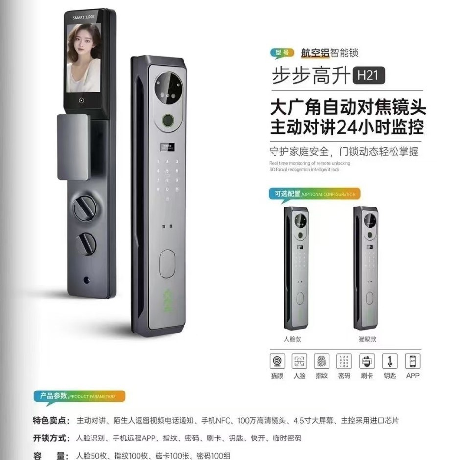 Kunci Fingerprint Kunci Sandi Dengan Mata Kucing Terlihat 3D Pengenalan Wajah 5 Inci HD Layar Besar APP Buka Kunci Jarak Jauh Otomatis Cerdas