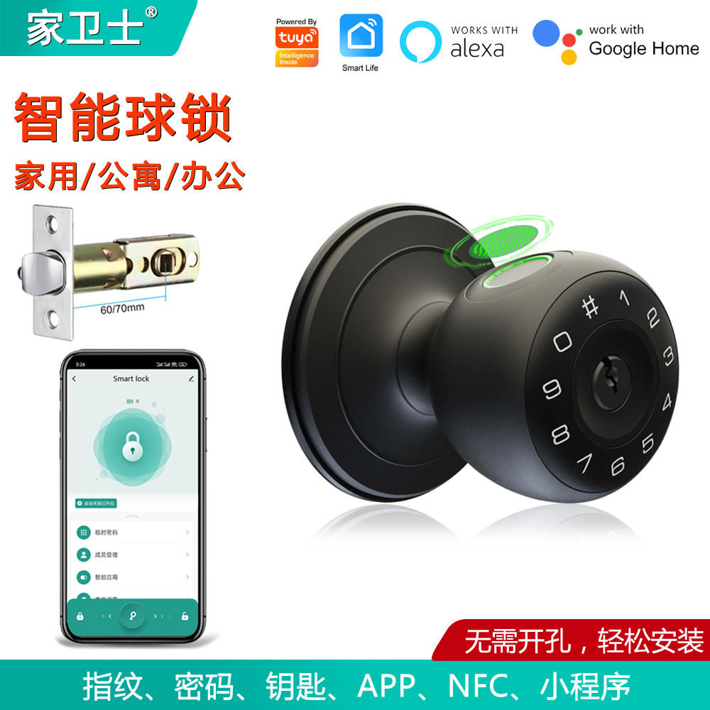 Kunci bola sidik jari, pelindung rumah pintar bola sidik jari, kata sandi, bulat, kunci elektronik, grafiti, Bluetooth, kata sandi, instalasi sederhana