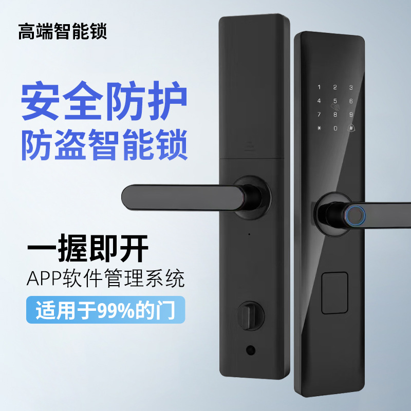 Kunci pintu elektronik pintar anti maling semi-otomatis dengan sidik jari, kartu gesek, dan kata sandi, yang dapat dibuka dengan satu sentuhan, cocok untuk pintu masuk rumah sewa.