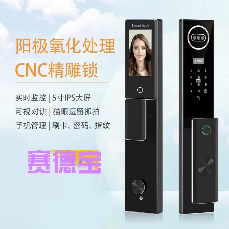 Aviasi aluminium ukiran, kunci pintar wajah 3D anti-maling, pintu pintu masuk ponsel pemantauan jarak jauh interkom video