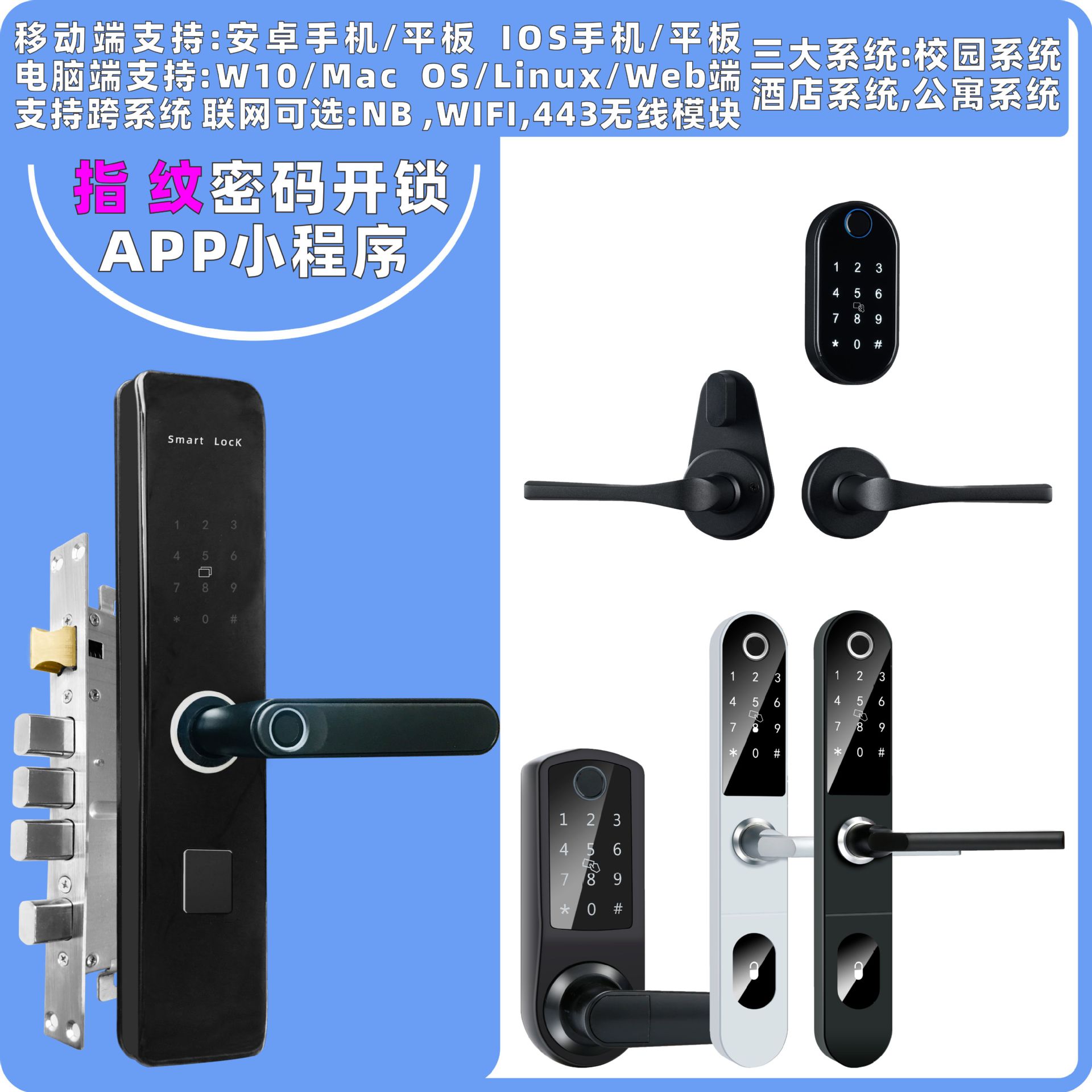 Mendukung berbagai bahasa, kunci sidik jari grafiti, kunci pintar panggilan video, kunci pintu anti maling pengenal wajah 3D, pembuka kunci sidik jari