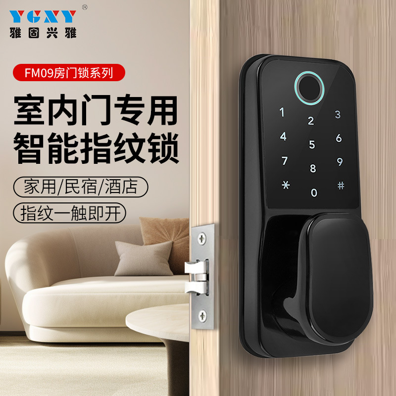 Pabrik grosir kunci elektronik rumah tangga anti-maling kunci sandi pintu semi-otomatis kunci pintu pintar apartemen satu pegangan kunci sidik jari