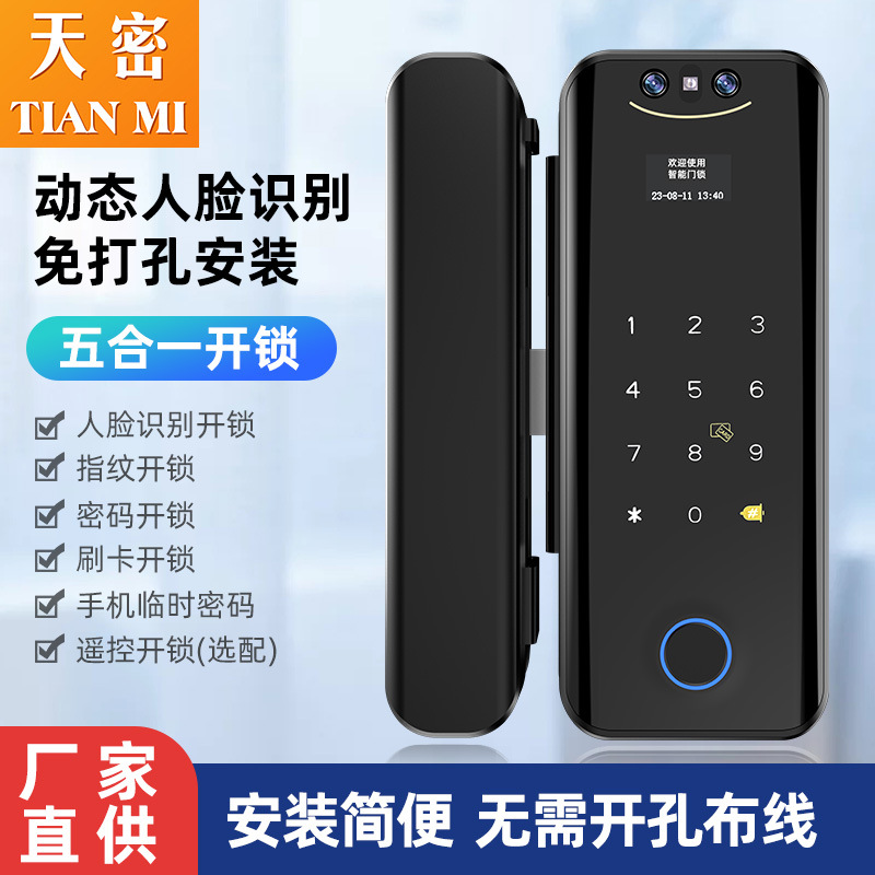 Kunci pintu kaca pengenalan wajah, kunci pintu kaca tuya grafiti APP Buka kunci jarak jauh pengenalan wajah sidik jari kata sandi kunci pintu