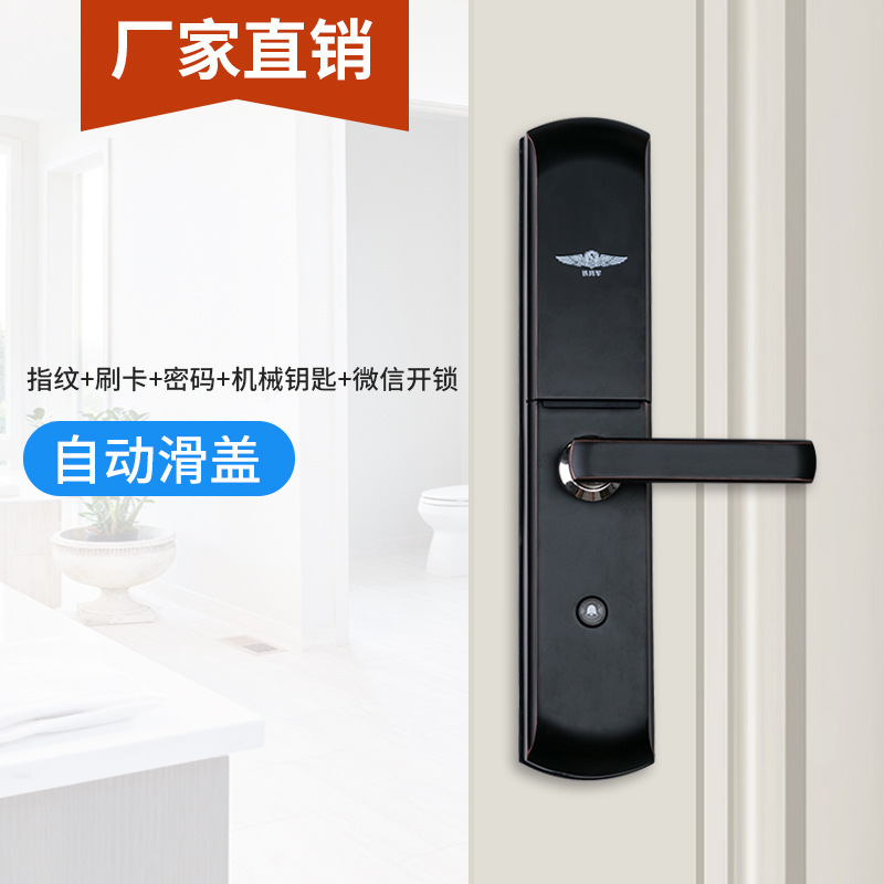 Kunci pintu otomatis cerdas sidik jari, kunci rumah tangga anti-maling kunci pintu apartemen hotel kartu magnetik kunci elektronik mata kucing kunci kata sandi wajah