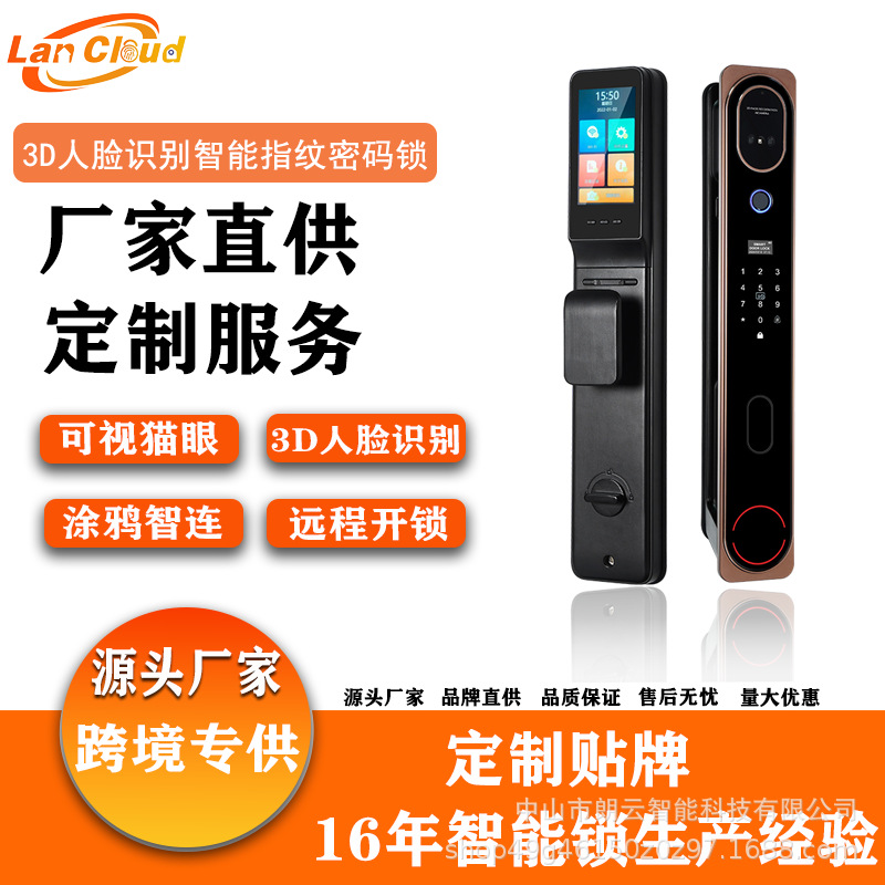 Langyun kunci visual mata kucing, kunci pintu rumah tangga anti pencurian kunci sandi elektronik otomatis 3D pengenalan wajah kunci sidik jari