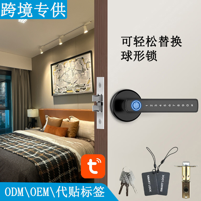 Kunci Tangan Pegangan Pintu Sidik Jari Cerdas Kunci Pintu Kamar Tidur Kunci Satu Sisi Kunci Saluran Lidah Tunggal Kunci Pintu Kayu Kunci Tambahan tuya