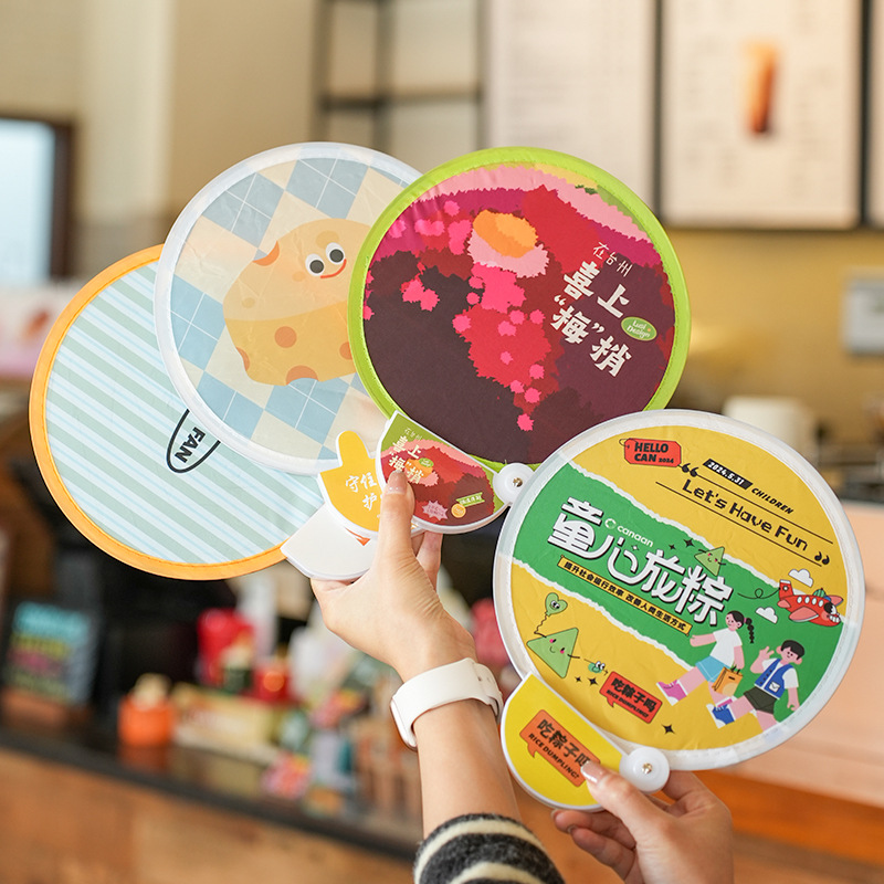 飞盘扇子定制夏季网红绢布应援日式卡通广告反光折叠团扇定做logo