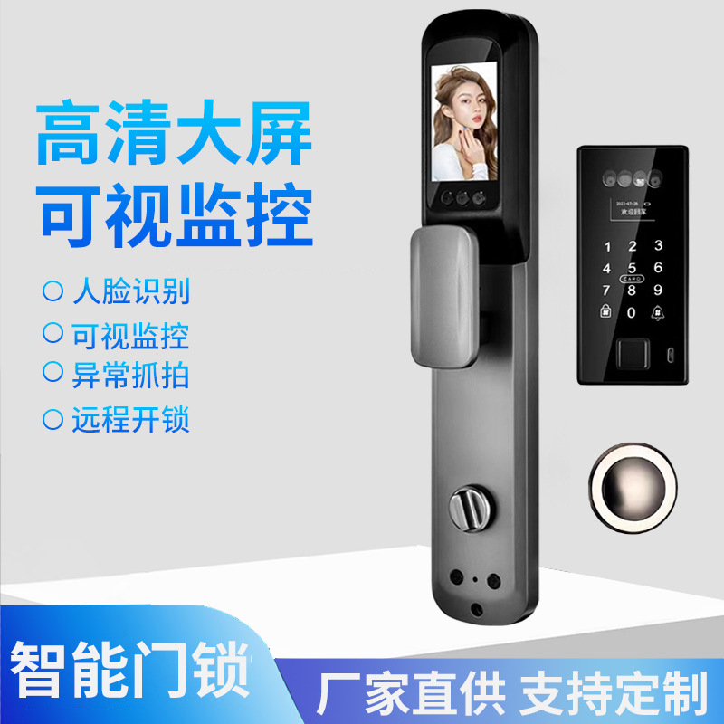 Grosir monitor kunci pintar pengenalan wajah 3D, kunci pintu sidik jari mata kucing, kunci pintar elektronik, membuka kunci jarak jauh, kunci sandi