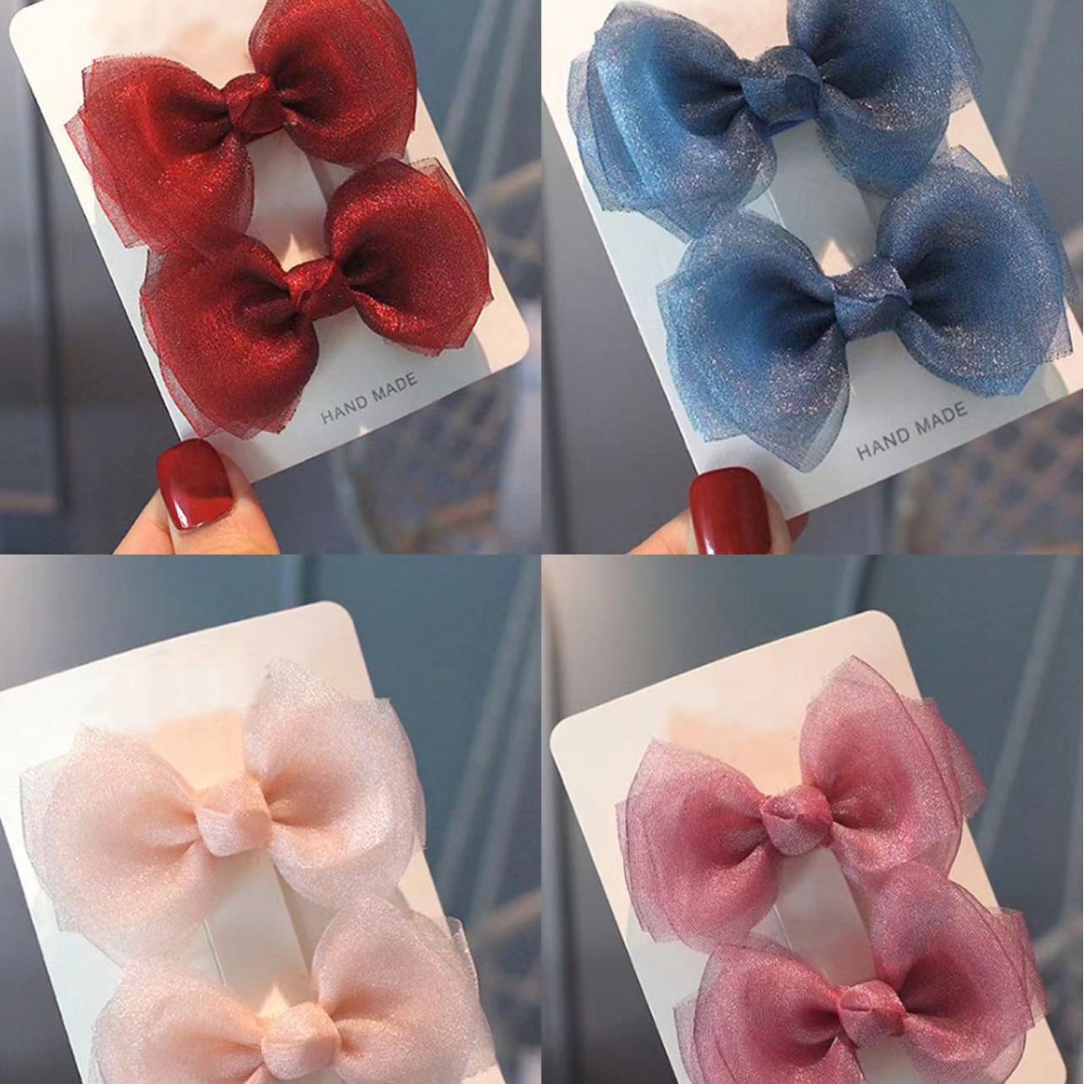 Jepit rambut mutiara ins Eropa dan Amerika, jepit rambut kain anak-anak 2 potong set, jepit rambut jala manis kepala aksesoris rambut