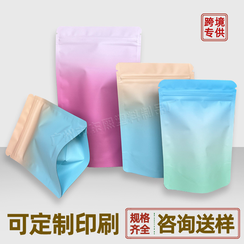 跨境专供渐变彩色自立骨袋食品袋高颜值ins自封袋干果镀铝包装袋
