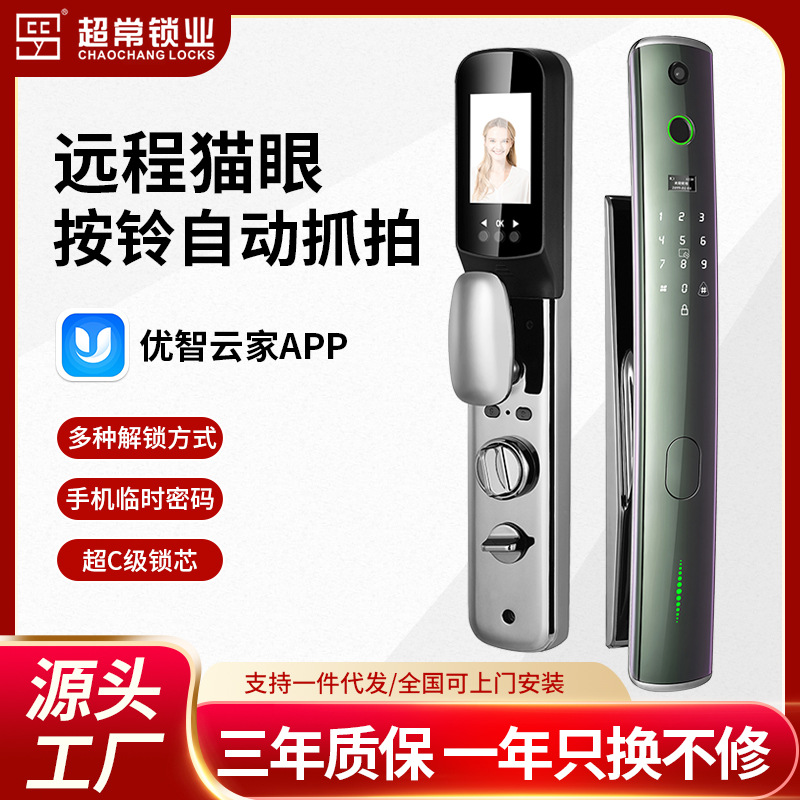 Kunci pintu pengenal wajah, kunci sidik jari, interkom video, kunci pintu pintar pengawas, kunci kata sandi rumah, lubang intip video.