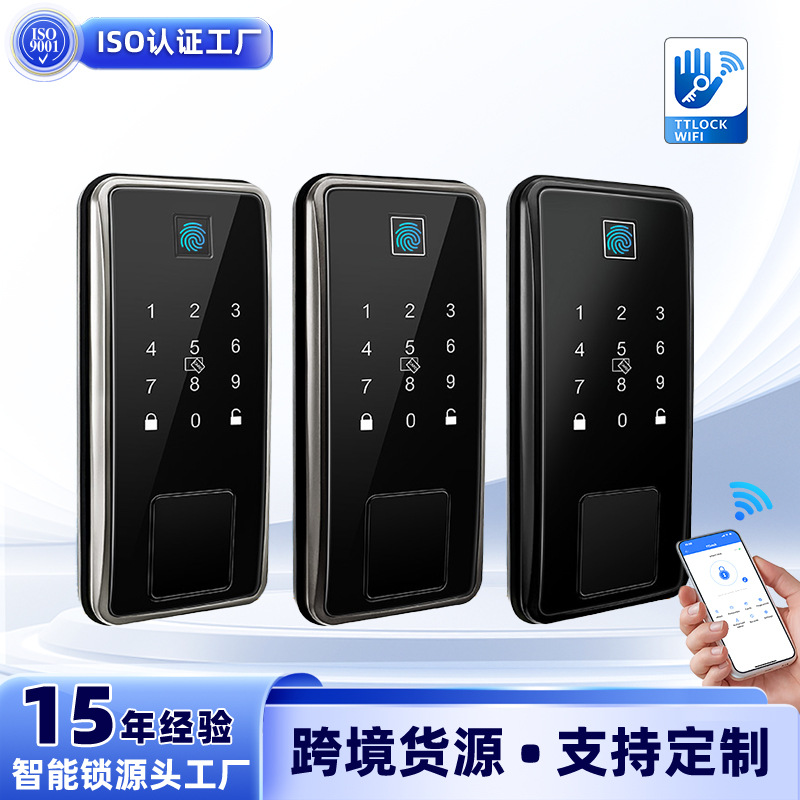 Kunci Pintu Amerika universal sidik jari, kunci pintar melalui wifi tanpa pegangan, kunci satu klik